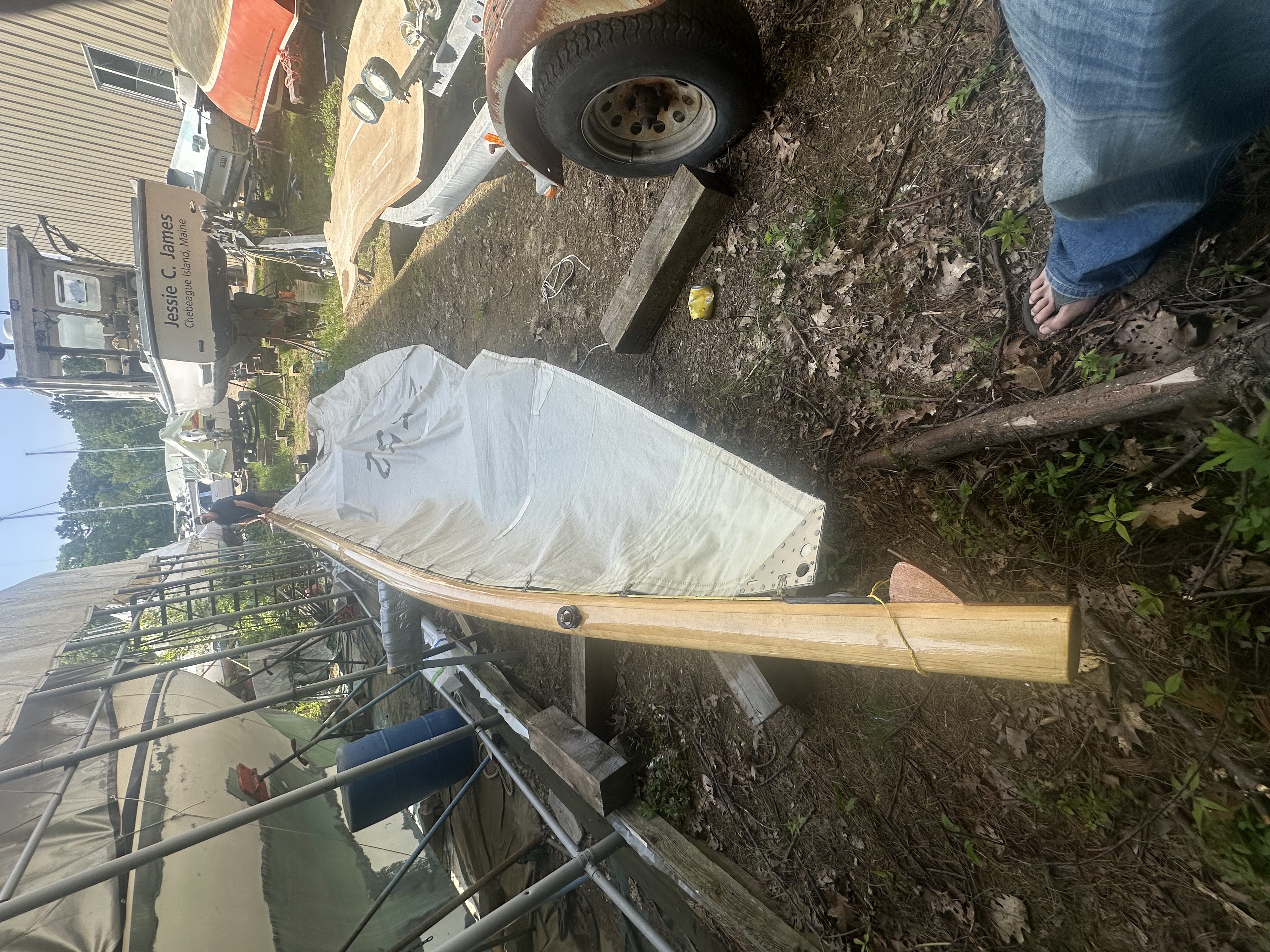 The new mast weighs less than hundred pounds, is built to the class rule, the jumper strut is gone - and it’s actually strong! Major upgrade. Then we had to lug it out to Maine.