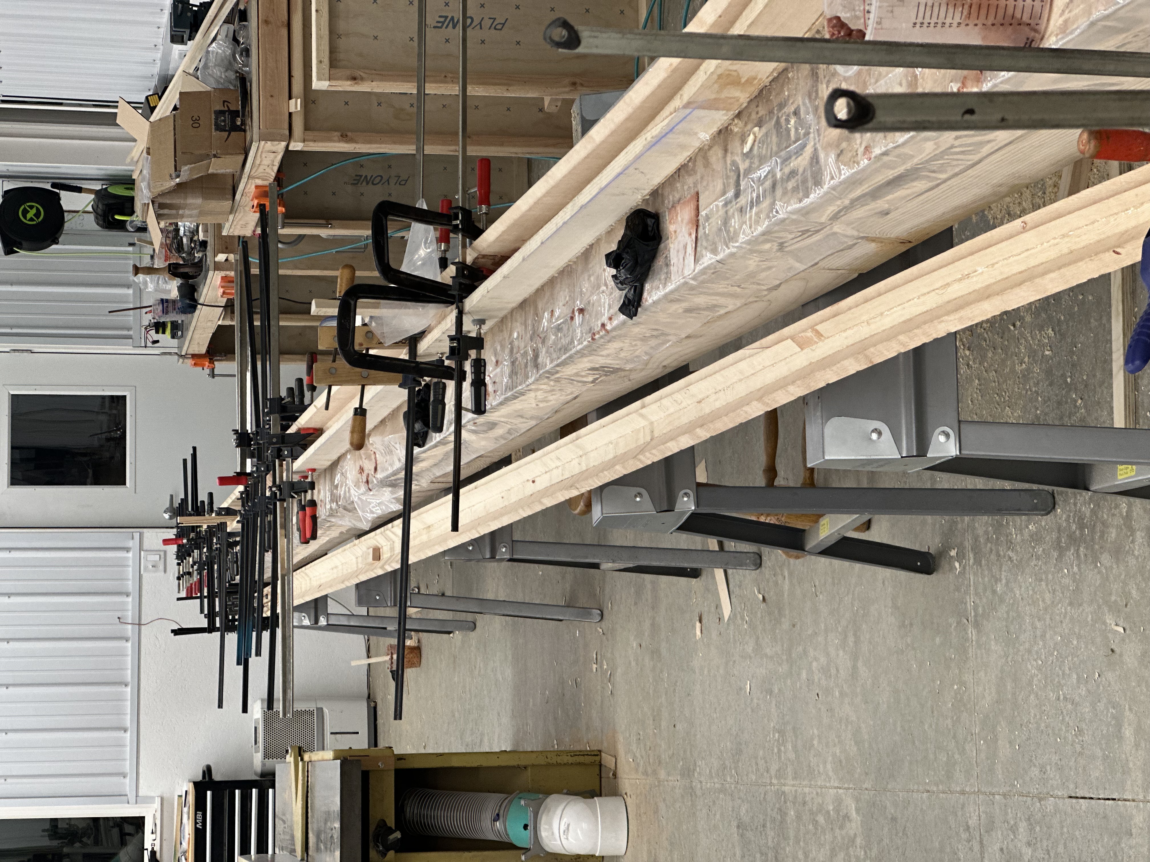 With mast sections in hand, we went out and bought a ton of Sitka spruce in 20’ lengths from the local iceboat club. They place a group buy every year for building boats. The stuff is hard to come by! Sitka spruce is the traditional choice for spars: straight-grained, light, strong, and available in clear lengths. With lumber in hand, we then mapped out every cut we’d make to every board.