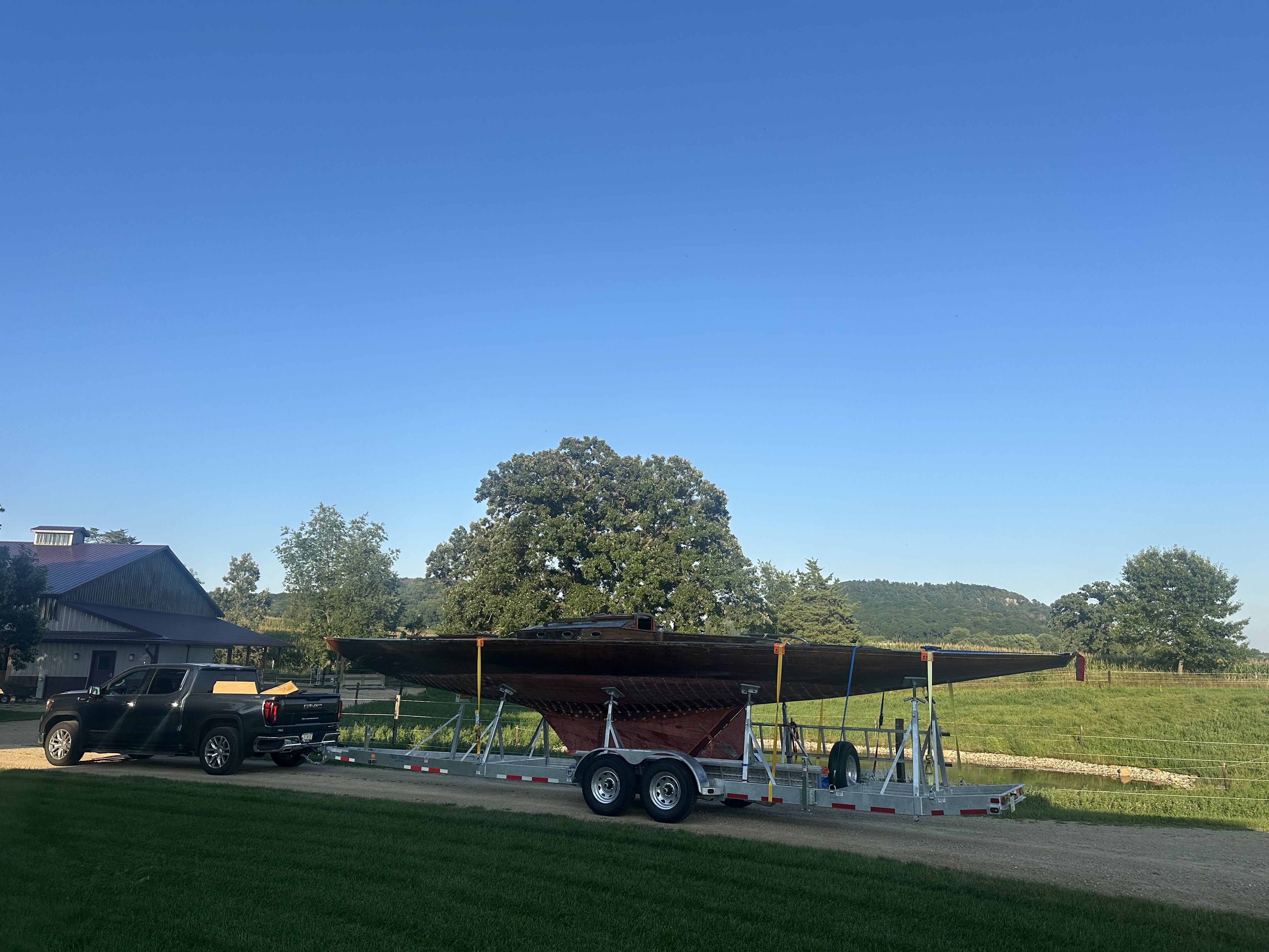 At this stage in the game, the boat is solid enough to handle the vibrations and stresses of a thousand miles in a trailer, so we decided to take her to our primary state of residence to make it easier to finish the job. We had a trailer made to fit Ariadne and hit the road.
